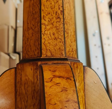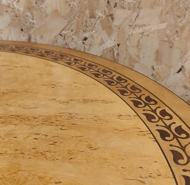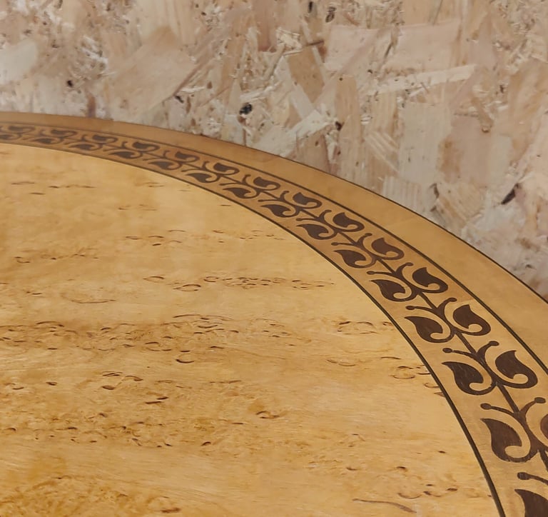 Titchmarsh and Goodwin pedestal table 42" Diameter, Birch, decorative inlay.